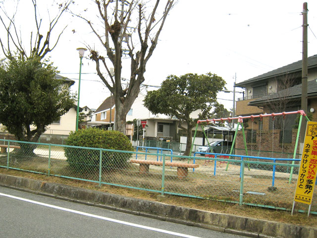 三角形の土地をうまく利用し、公園が作られています。 先細りの形が、なんだか面白いです。