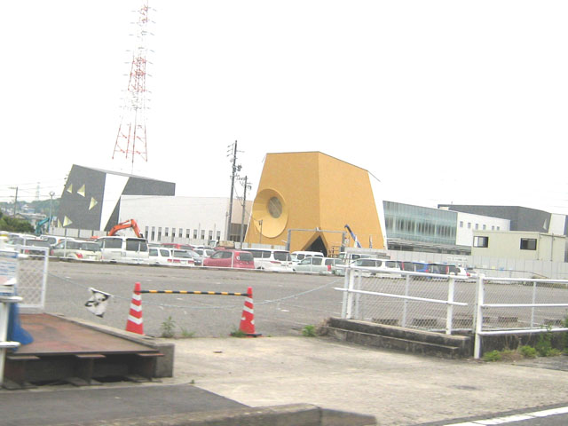 新図書館の全容が見えてきましたね。 丸い窓や三角窓。なんか奇抜なデザインですね。