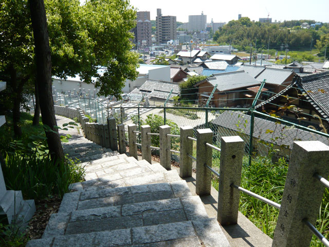 折戸町八幡社の境内から、階段を下りると、日進駅方面が一望出来ます。 なかなかの良い眺めです。