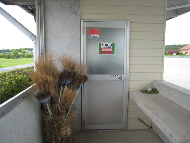 総合運動公園に「AED(自動体外式除細動器)」が設置されていました。 2004年7月より医療従事者ではない一般市民でも使用できるようになったそうです。