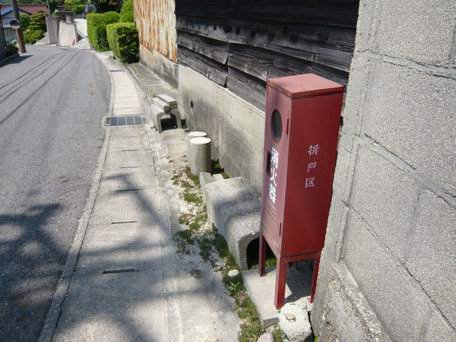 折戸町にある消火器。 良く見ると「折戸区」になっています。 日進市が、まだ日進町だったころから、ここにあるのですね。
