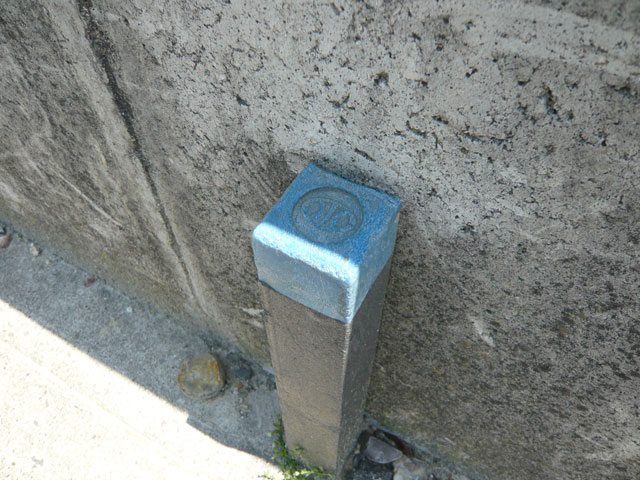 栄3丁目付近の道路で、こんな杭を見つけました。 この下に、水道管が通っているのかな? 良く見ると、道路にはいろんなマークがあって面白いですね。