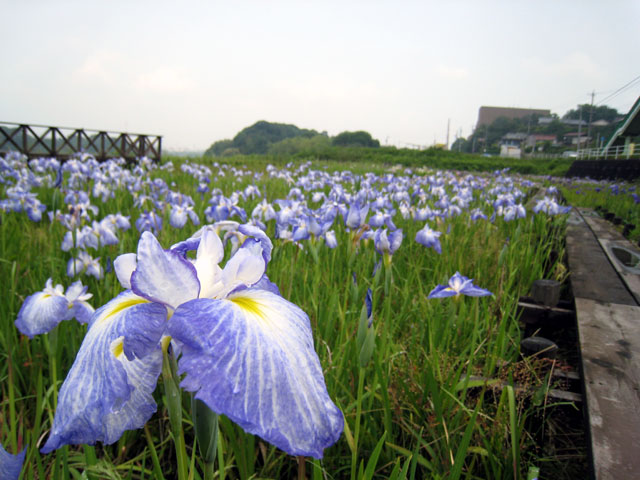 折戸町、おりど病院すぐ横に「日進 花菖蒲園」なる場所があります。 昨年は、菖蒲が一本も咲いていませんでしたので、無くなったと思っていましたが復活したようですね。 今がちょうど見頃ですよ。