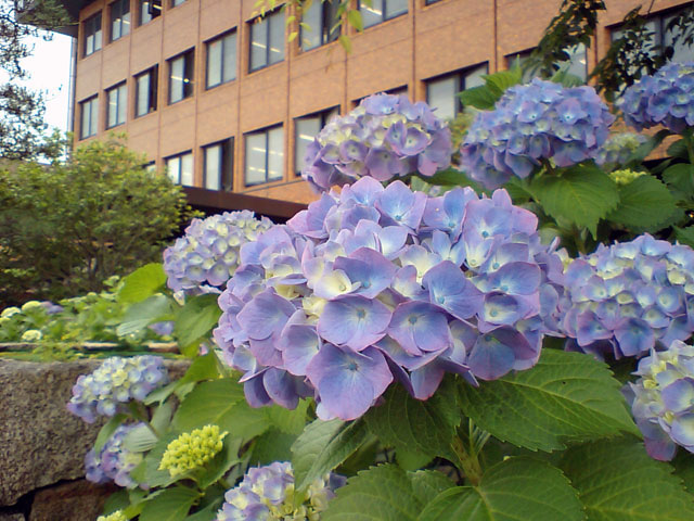 市役所に咲いていたアジサイです。 きれいですね。 紫陽花(あじさい)の色は、土壌のpH濃度、アルミニウムイオン量によってピンクや紫など、様々に変化するらしいです。