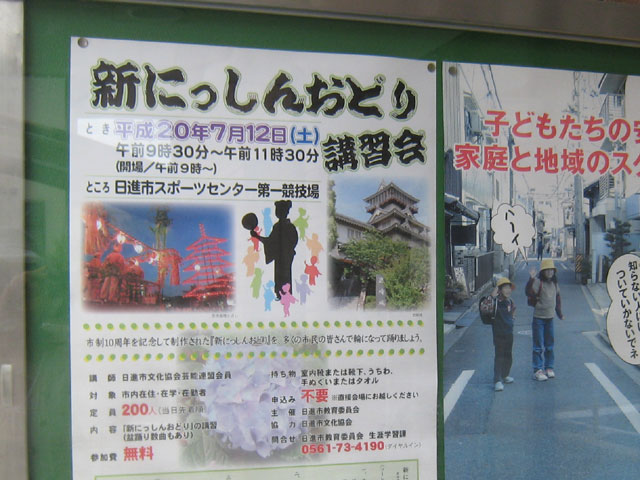 日東コミュニティーセンターの掲示板に、講習会のポスターがありました。 新にっしんおどりの講習会。 そろそろ夏祭りの季節ですね。