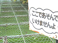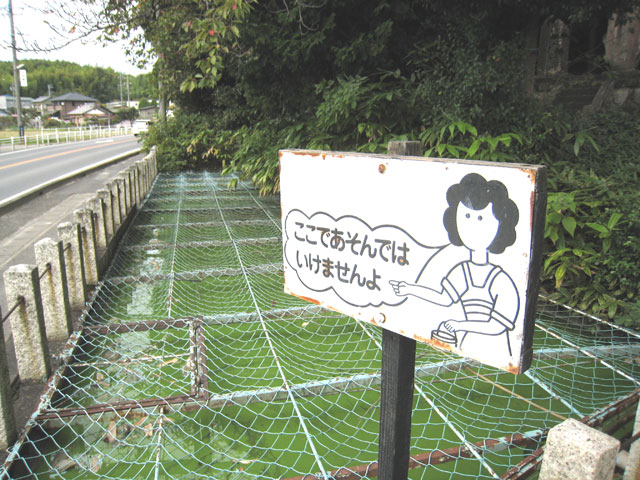 米野木神社の入り口に、注意を促す看板。 おかあさんが語りかけているような、あたたかい看板です。 みなさん、くれぐれも 「ここであそんではいけませんよ」