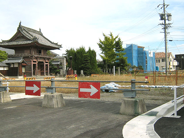 日進市岩崎町小林にある、妙仙寺前の道路が工事されています。 岩崎川の新しい橋につながる道です。道路が完成すれば、風景も一変するでしょうね。