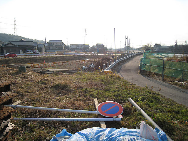 岩崎橋東の交差点のすぐ南側です。 右手には新しい岩崎橋ができています。 左手は道路の拡張工事をしています。