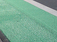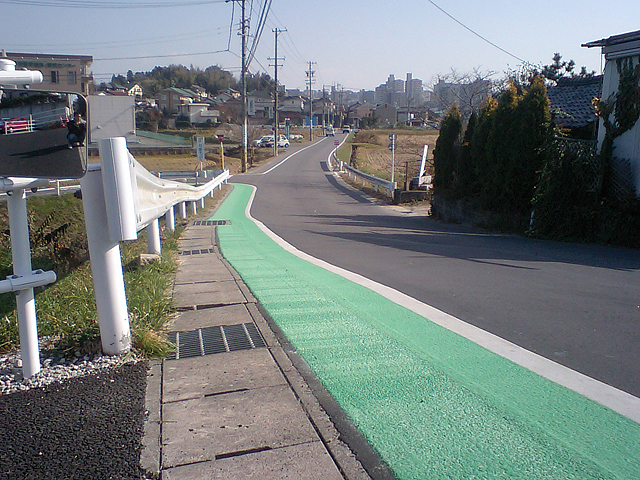 日進市藤塚から折戸へ抜ける道路です。 道幅も狭く意外と交通量がある道路です。 緑色の歩道が整備されていました。 通学する子供たちには、少しでも安全が確保されよいことですね。