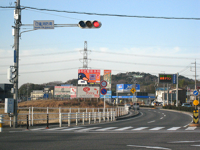 左手にドラッグストア。右手にはトヨタ自動車の社員寮。