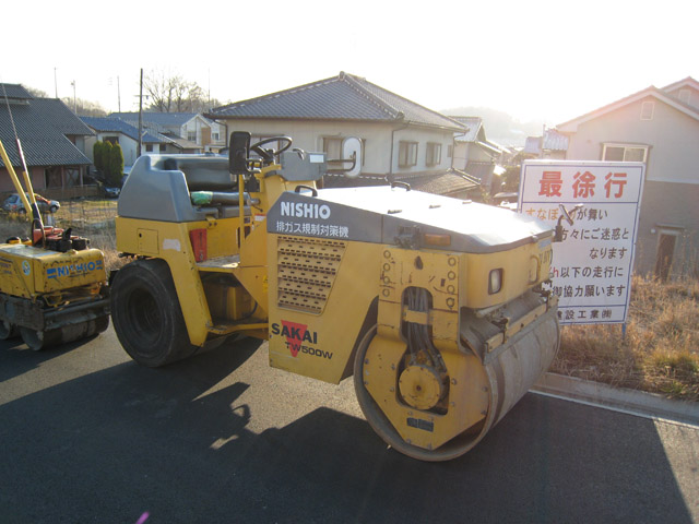 ロードローラー。アスファルトを踏み固める工事車両です。 米野木の道路に止まっていました。 こんな車両でも環境対策がされているんですね。 排ガス規制対策機。