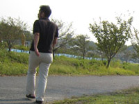 ひげをたくわえたおじさんが、気持ちよさそうに歩いていきました。