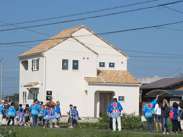 日進市では、年々地域のお祭りが盛んになってきていますね。 日進市本郷町のお祭りで、御輿を担ぐ子供達です。