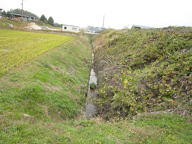 畑や田んぼの脇をまっすぐ流れている川です。 用水路ではなく、折戸町高松の山からの湧き水のようです。