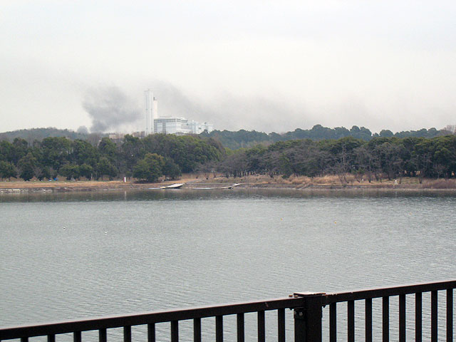 美化センターの後ろから、黒い煙がモクモクと上がっています。