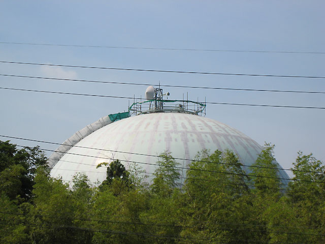 住宅と住宅の間から、この鉄塔を見上げると、変な感じですね。