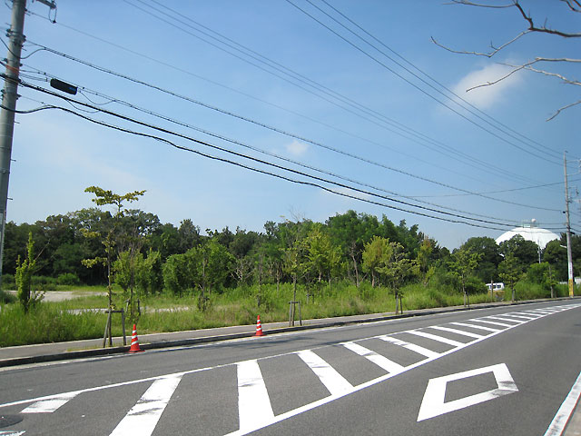 小さく見えるガスタンク その手間左側が、小中併設の新しい学校の建設予定地です。 こう見ると、目と鼻の先ですね。