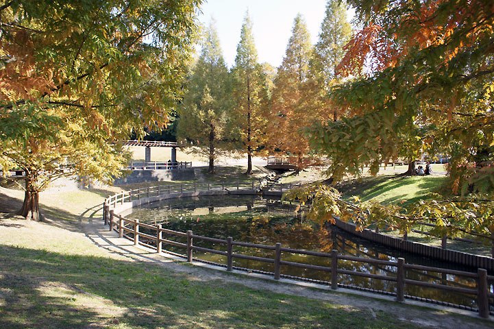 紅葉が美しい牧野が池公園です。 広い公園内では、散歩する人や芝生で遊ぶ人。 遊具で遊ぶ子ども達で賑わっています。 午後からは駐車場もいっぱいになる程の人気ぶりです。