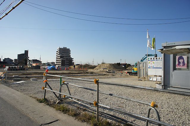 日進市野方町平池で、大型スーパーの為の工事が進んでいます。