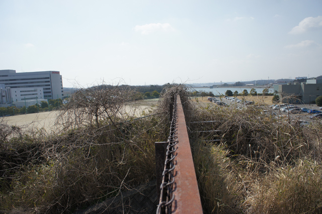 ここは、つる草を足に絡めながら上ってきた、豊田線をまたぐ陸橋です。