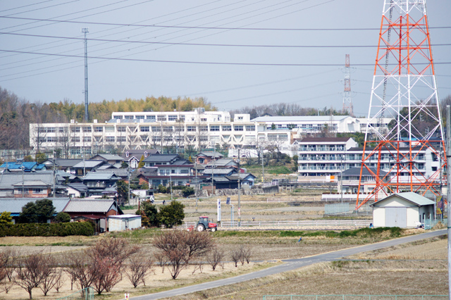 「輝く仲間 強い絆」校舎の上にはこう書かれていました。 校舎の前にある桜の木々は、入学式には桜が満開になっているでしょう。