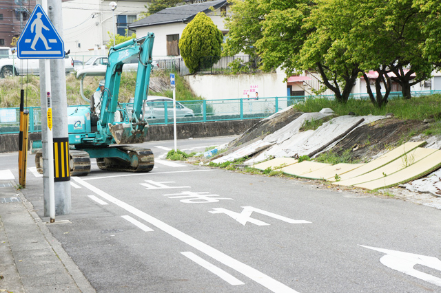 ショベルカーが道を走る