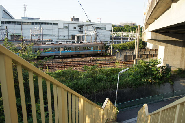 赤池2丁目の交差点を東に20mほど行ったところに、下に降りる階段があります。