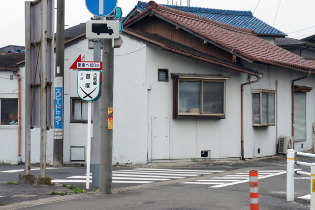 長久手町 早稲田の交差点に「首塚 南東へ100m」というインパクトのある看板が。
