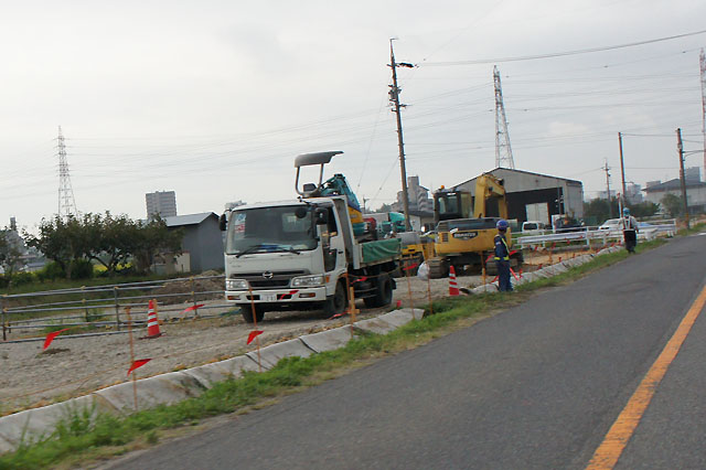 浅田西の交差点から東に伸びる道路、また何か工事をしています。