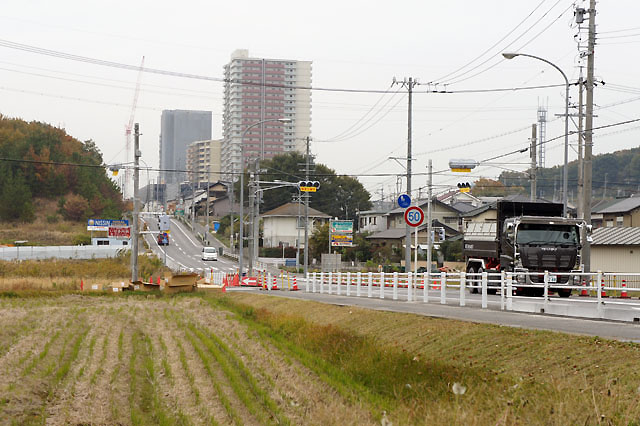 米野木駅前から、梨の木小学校を超えるまで、1つも信号がない直線の道です。