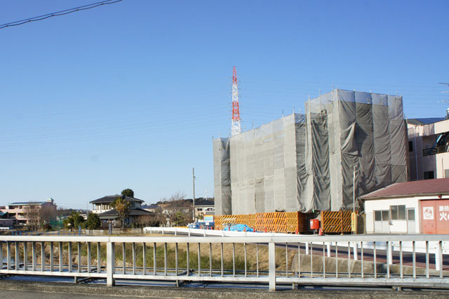 工事柵の下にぽつんと出ている赤いポストが目立ちます。