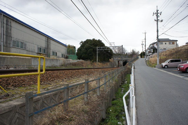 道路は上へ、線路は山の中へ入っていきます。