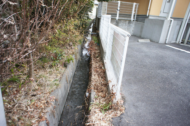雨も降っていないのに、家と家の間を潤沢な水が流れていきます。