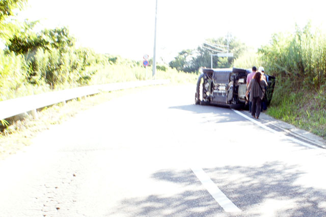 車が横転しておりました。