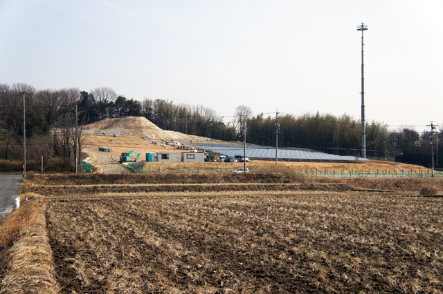 山がまるっとなくなって、ソーラーパネルを敷き詰めています。