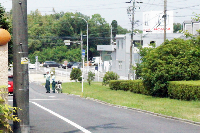 駅周辺でよく見かける駐車監視員さんが住宅地を自転車で通り抜けていきました。