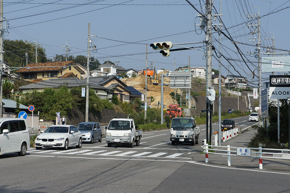 岩崎の交差点から北を望むと山が削られていました。