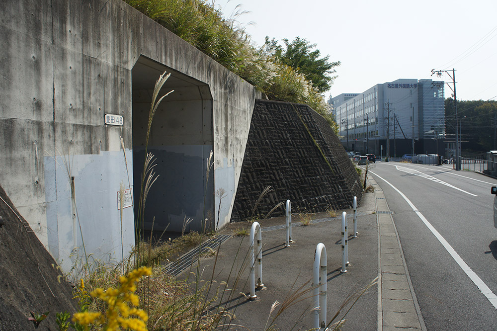 北側から入って、南側へ抜けると目の前に名古屋外語大学が出てきました。