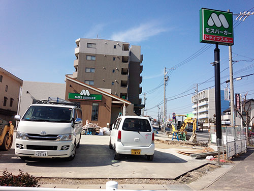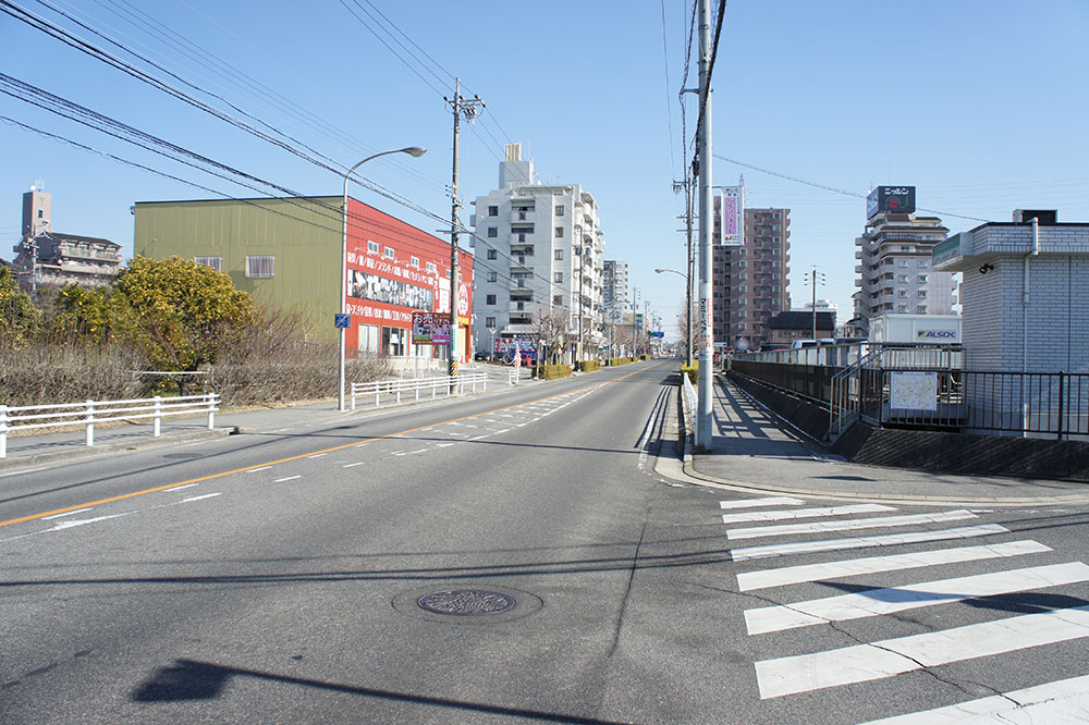 赤池1丁目の交差点あたりから赤池駅南の交差点方面を眺めています。