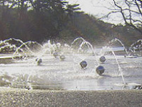 夏場のあつい時期には、子供達が水浴びです。