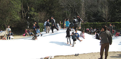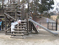 小さなアスレチックのような滑り台。小さな子もチャレンジしています。