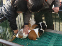 モルモットを抱っこしたり、ウサギさんをなでなで。