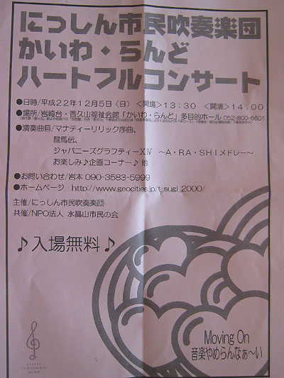 5. にっしん市民吹奏楽団 冬のコンサートのお知らせです。